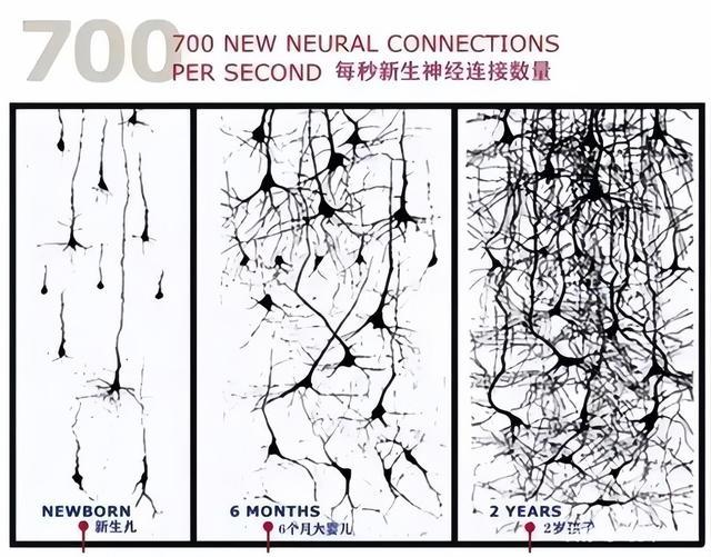 这个阶段孩子大脑容量会从成人四分之一快速发育到85%,神经元每秒以700到1000个速度搭接,外界刺激直接决定发育质量。